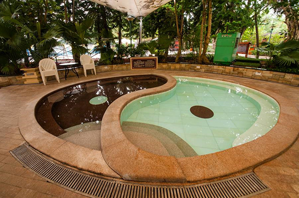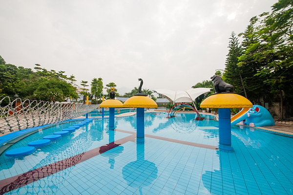 溫泉游泳池水深1.2-1.6米,水溫常年保持在36-39℃之間,兒童戲水區(qū)建造了浮萍橋、水上木馬,水上蹺蹺板、青蛙滑梯、攀爬架等多種水上游樂設(shè)施,專門供小朋友玩耍。